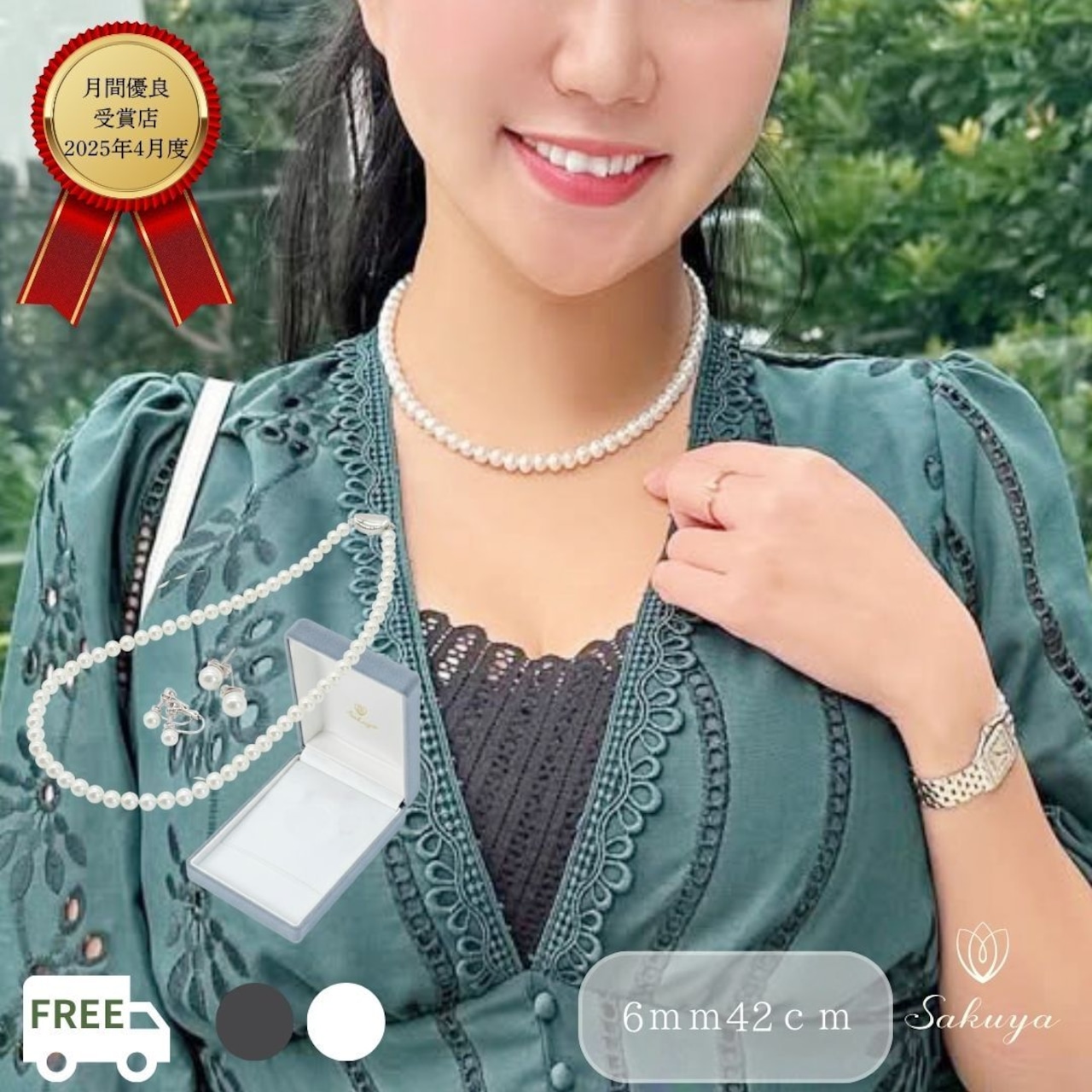 パール ネックレス フォーマル ピアス イヤリング セット 冠婚葬祭 葬儀 結婚式 ジューンブライド 結婚式 成人式 真珠 イヤリング おすすめ パーティー 葬式 貝パール ネックレス 6mm42cm ホワイト シルバーブラック ケース付 成人のお祝い | sakuya