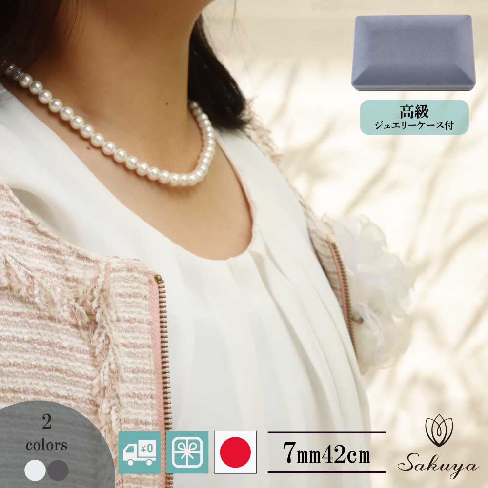 パール ネックレス 冠婚葬祭 入学フォーマル ジューンブライド 結婚式 入学式 式 真珠 ロング イヤリング おすすめ パーティー 貝パール ネックレス 7mm42cm ホワイト シルバーブラック ケース付 ネックレス単品 | sakuya