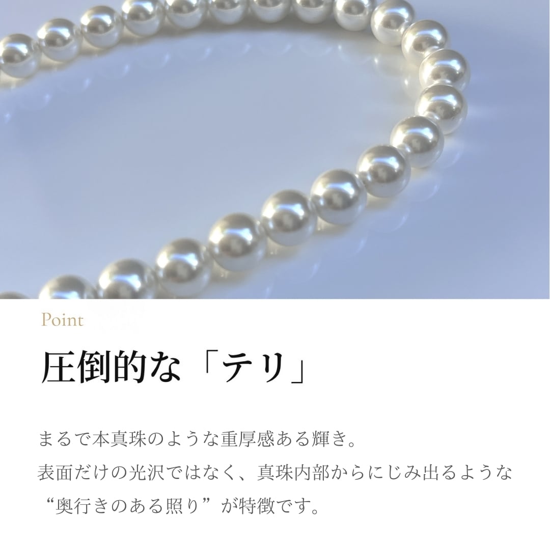 スタンダードな8mm珠×ロング120cmは、ハレの日のアイテムにぴったり。1連、2連とコーディネートに合わせてお使いいただけます。