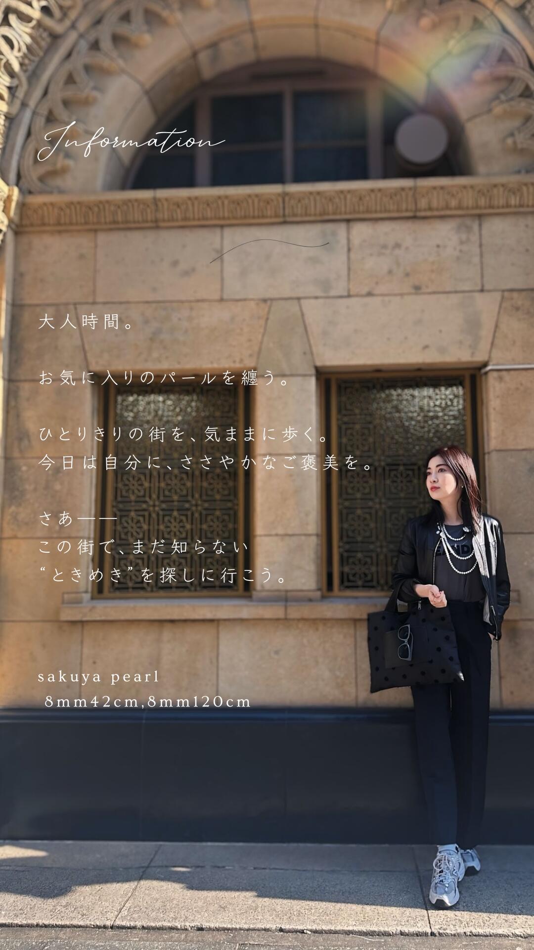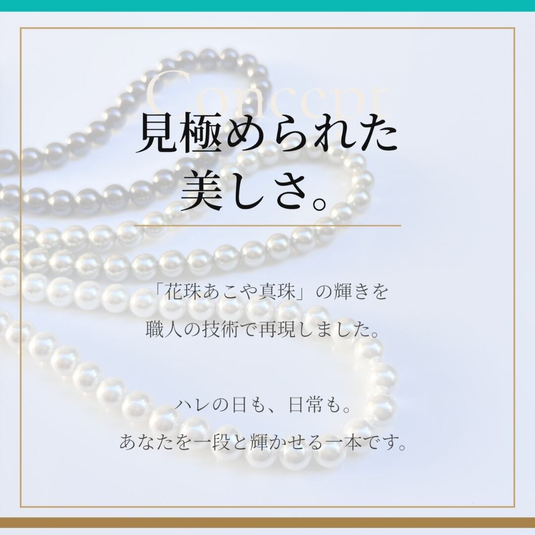 スタンダードな8mm珠×ロング120cmは、ハレの日のアイテムにぴったり。1連、2連とコーディネートに合わせてお使いいただけます。