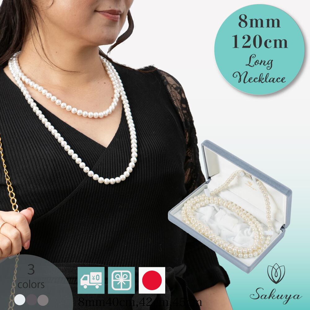 貝パール ネックレス フォーマル ピアス イヤリング ジューンブライド 結婚式 入学式 ロング おすすめ パーティー 8mm120cm ホワイト シルバーブラック グレー ケース付 ネックレス単品 | sakuya