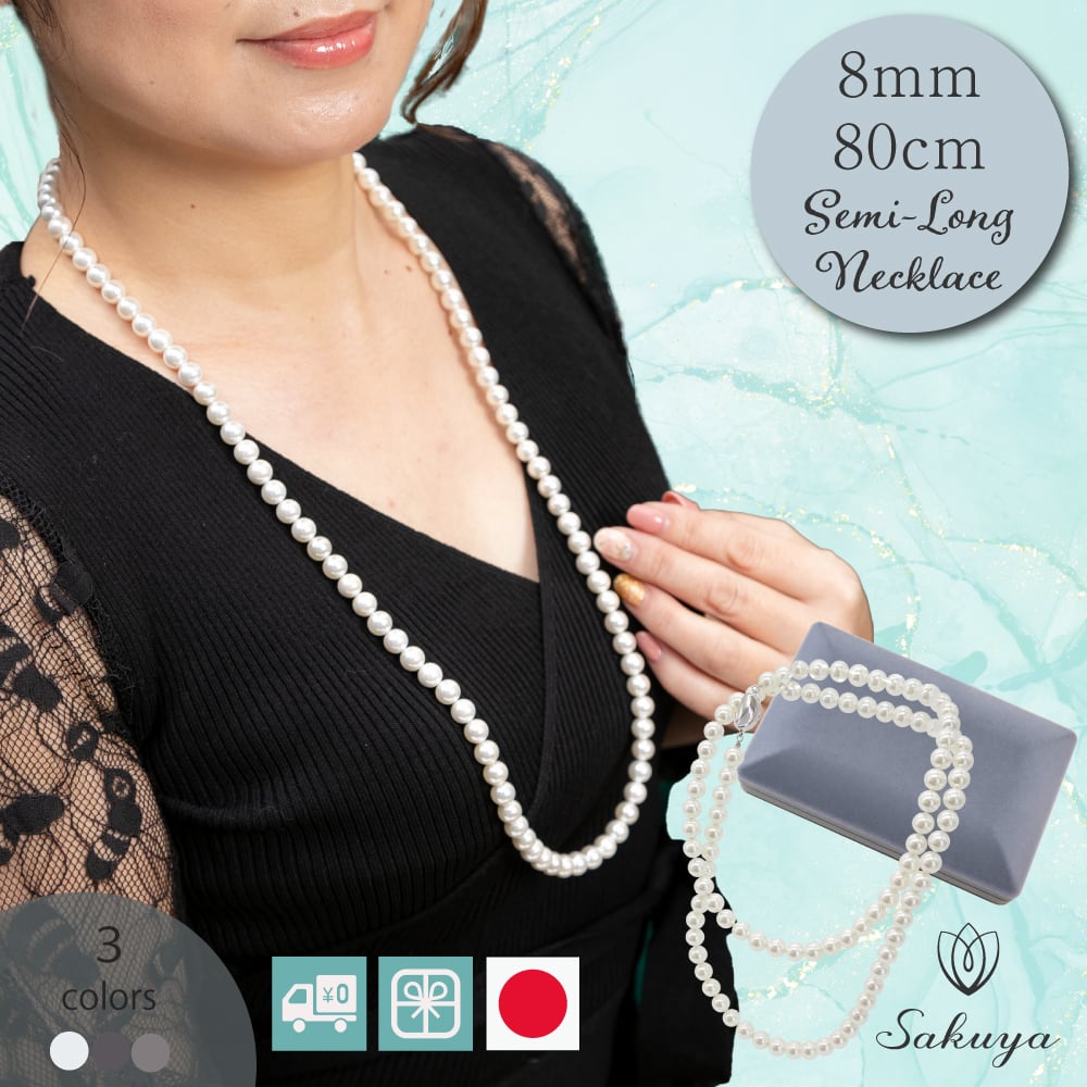 パール ネックレス フォーマル 結婚式 ジューンブライド 結婚式 入学式 式 真珠 セミロング イヤリング おすすめ パーティー 貝パール ネックレス 8mm80cm ホワイト シルバーブラック グレー ケース付 ネックレス単品 | sakuya