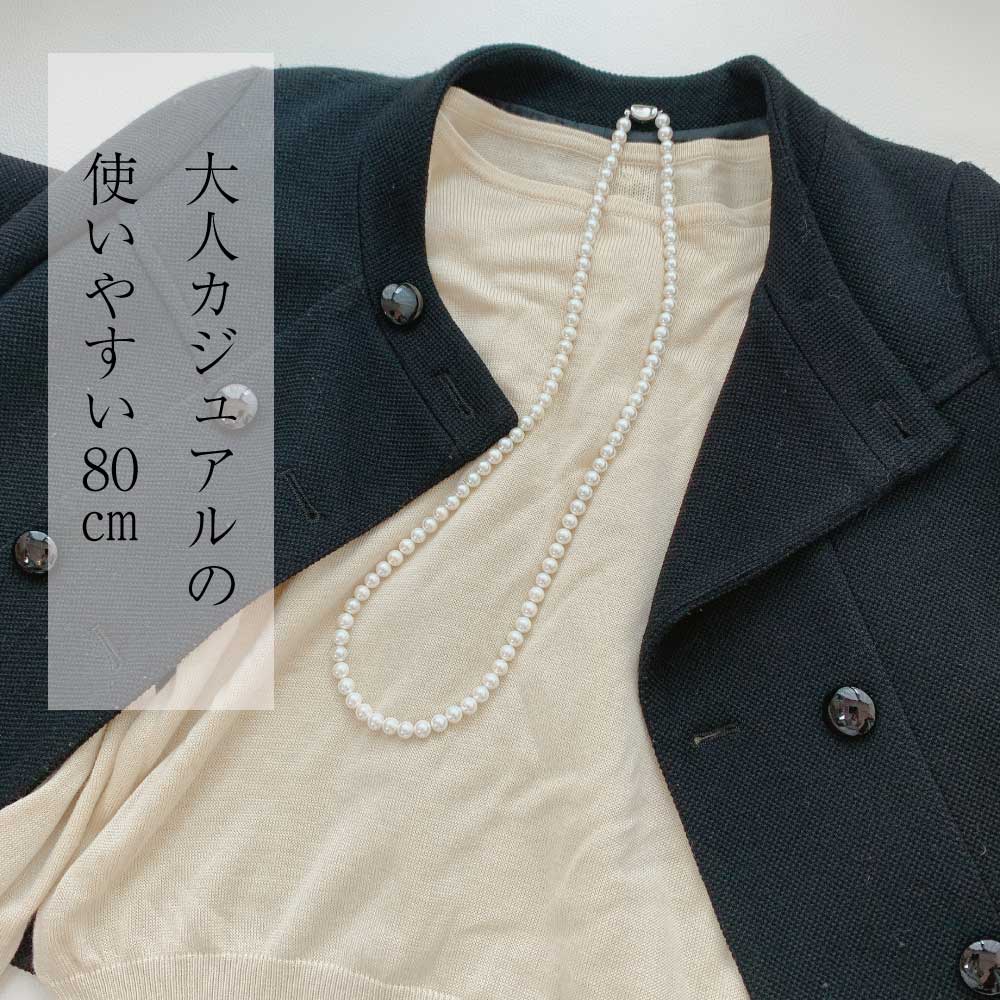 少し小さめの7mm珠×セミロング80cmは、ハレの日のアイテムにぴったり。コーディネートに合わせてお使いいただけます。