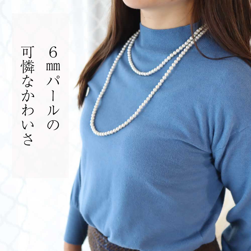 小粒が可愛い6mm珠×ロング120cmは、ハレの日のアイテムにぴったり。1連、2連とコーディネートに合わせてお使いいただけます。