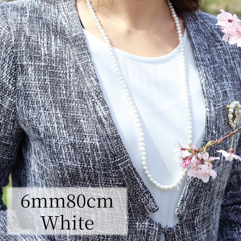 小粒が可愛い6mm珠×セミロング80cmは、ハレの日のアイテムにぴったり。1連、2連とコーディネートに合わせてお使いいただけます。