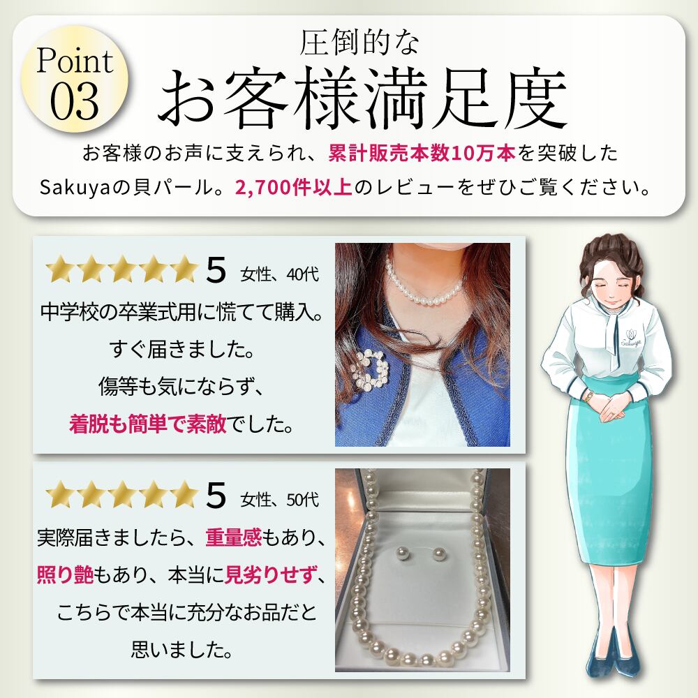 Sakuyaの貝パールネックレスは、他モールで何度もランキングNo.1を獲得した大人気定番商品です。
