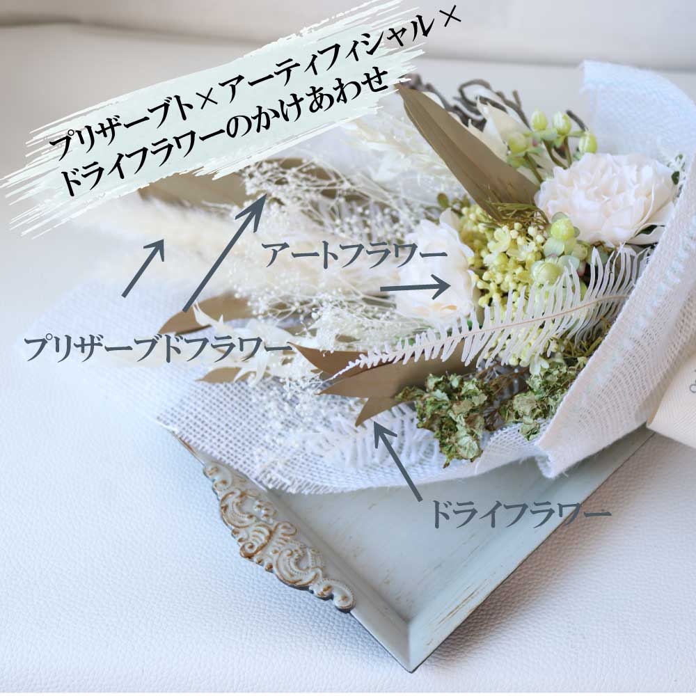選べるメッセージカードでさまざまなお祝いにご利用いただいております。開店祝いやご出産、ご結婚のお祝い、開業祝いでサロンなどへのお贈りも♪ドライフラワーやプリザーブドフラワー、アーティフィシャルフラワーを当店専属のフラワーコーディネーターが一つ一つ手作りにて仕上げております。
