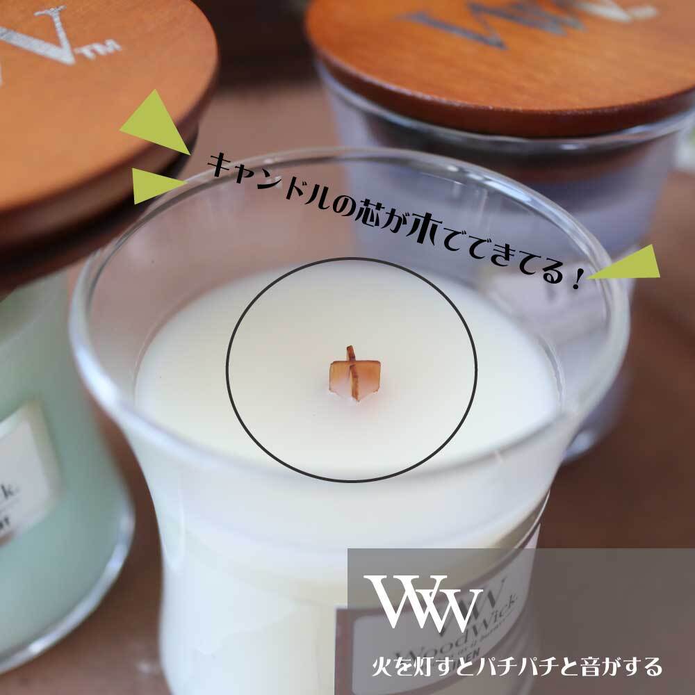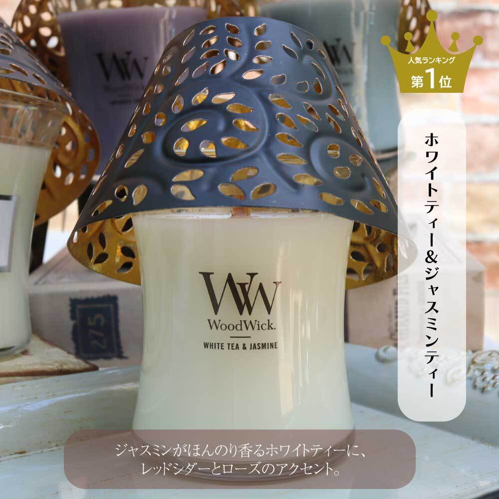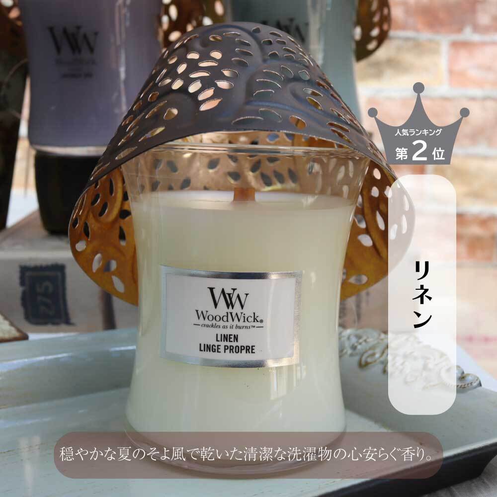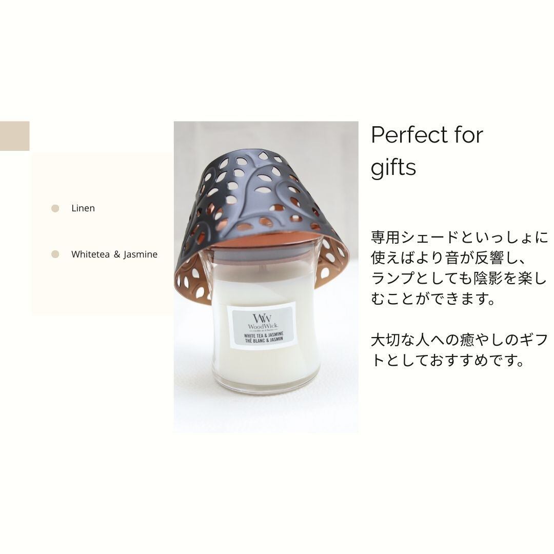 焚火キャンドル[S] WoodWick アロマ ウッドウィック ジャーキャンドル ホワイトティー&ジャスミン ー リネン クリスマス プレゼント ラッピング無料 ギフト対応 プレゼント いい香り 癒される ぱちぱち 音がするキャンドル シェード付きセット「復刻版!」 | sakuya