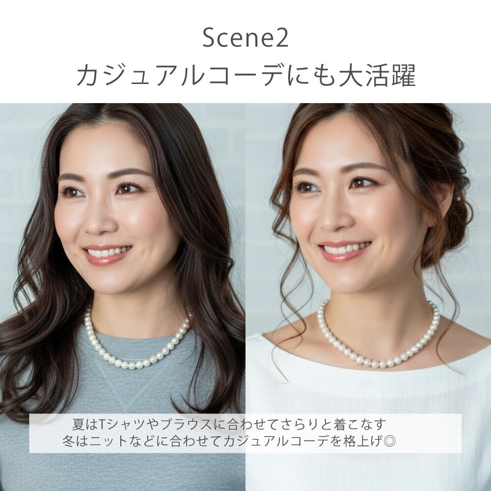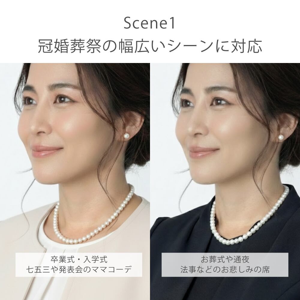 冠婚葬祭から普段使いまで気軽に使える貝パールは、汗や水を気にせずお手入れもらくらく♪