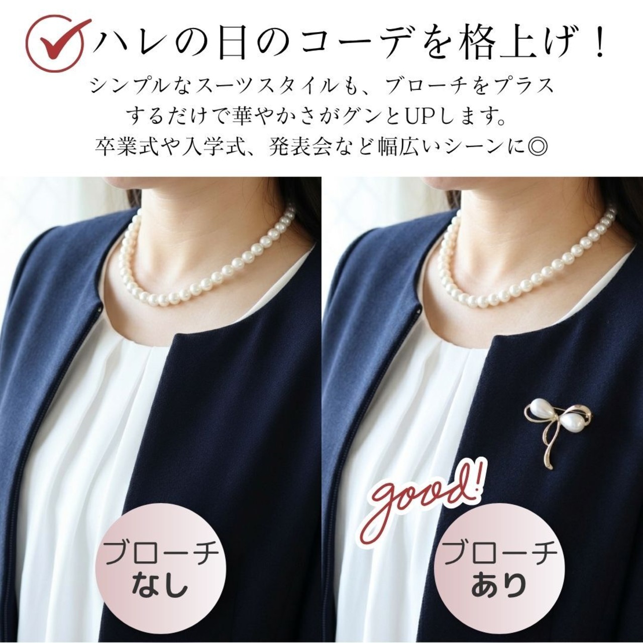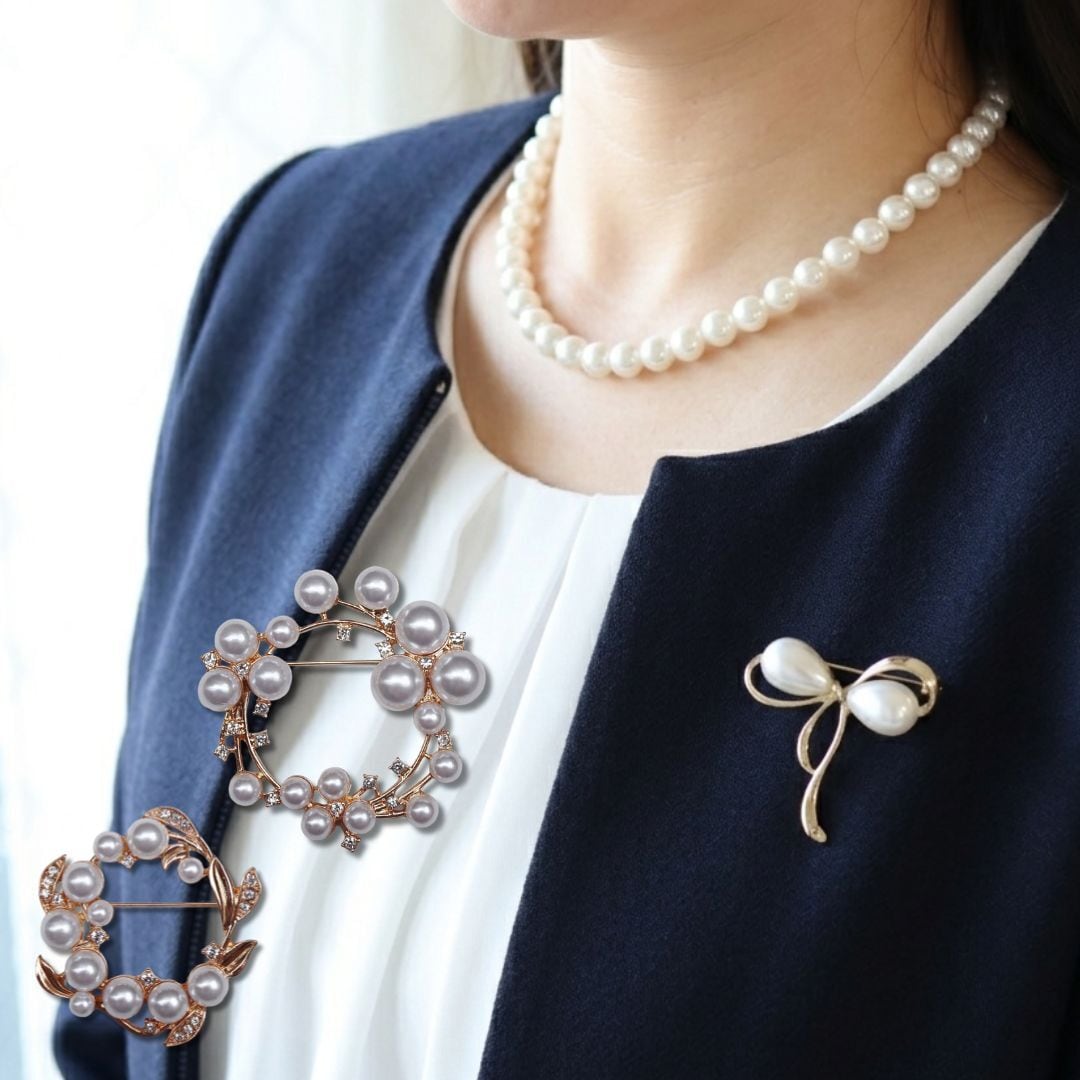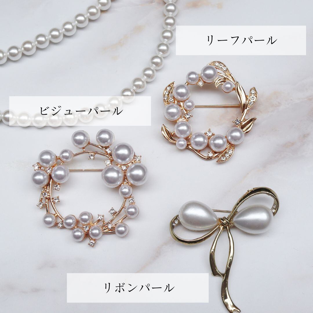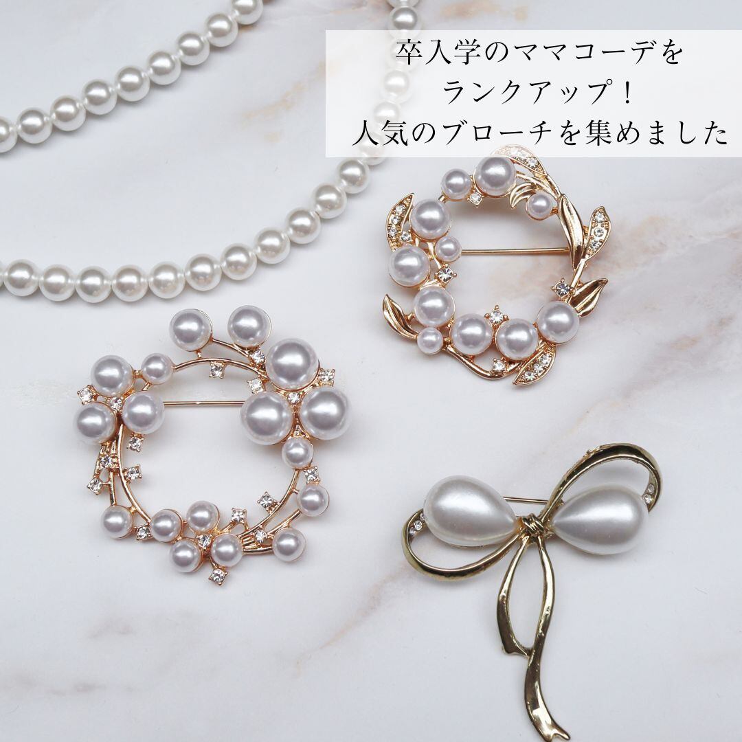 大人気のブローチ!卒業式や入学式の新定番となりつつある、ほどよいサイズ感のパール×ゴールドのエレガントなブローチ3種です。